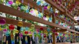 Follow the path of hydrangeas toward the main hall, and you’ll hear the gentle chime of furin (Japanese wind chimes) swaying in the breeze. The soft sound and vibrant flowers help ease the sticky summer humidity, creating a refreshingly serene atmosphere.