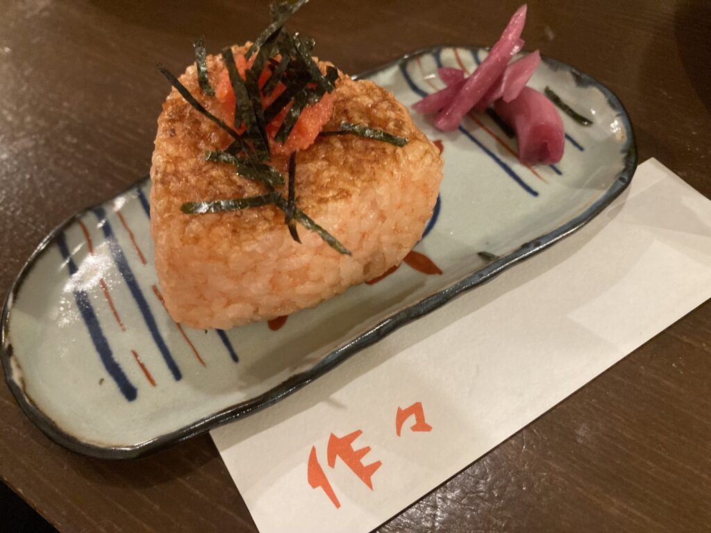 Mentaiko Cheese Onigiri, grilled over charcoal for a smoky aroma you won’t forget.