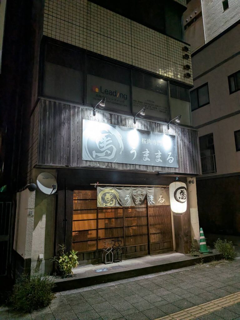 Today I’m introducing Sakura-niku Senmon Umamaru (桜肉専門 うままる / Horse Meat Specialty Umamaru)—located in Kamimachi 5-chome, Kochi City, Shikoku, just steps from the streetcar stop.